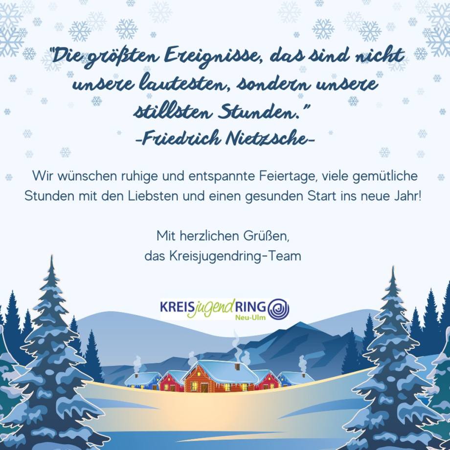 Vom 19.12.2025 bis einschließlich 07.01.2026 bleibt unsere Geschäftsstelle geschlossen. Ab dem 08.01.2026 sind wir wieder wie gewohnt zu erreichen.Wir wünschen schöne Feiertage und einen guten Rutsch ins neue Jahr!